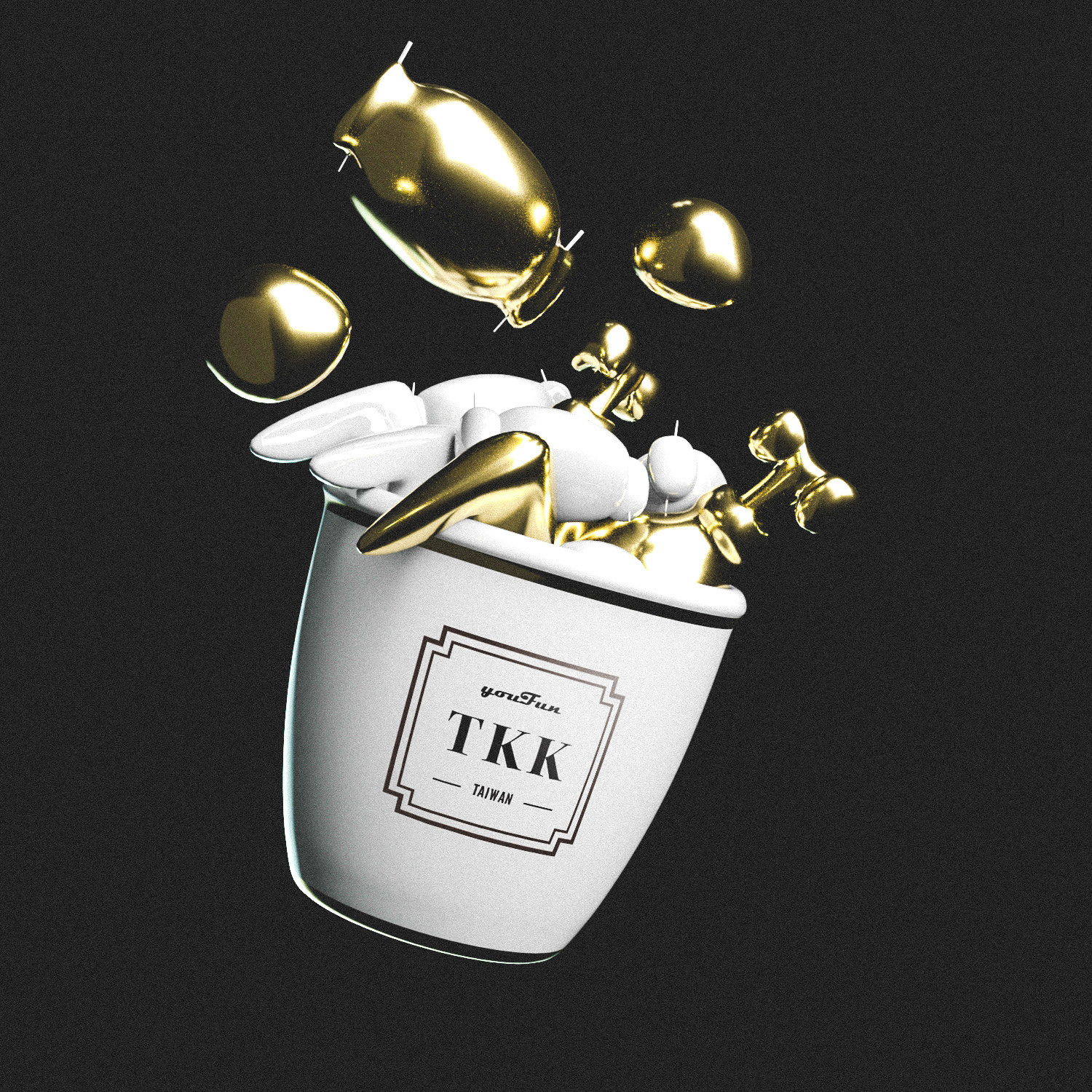 一家在台灣很有名的連鎖炸雞品牌,品牌的肖祥物名字叫阿勇Mr. TKK。他是個肌肉男,努力鍛練肌肉,同時大口吃雞肉,一個單純又好笑的好青年!